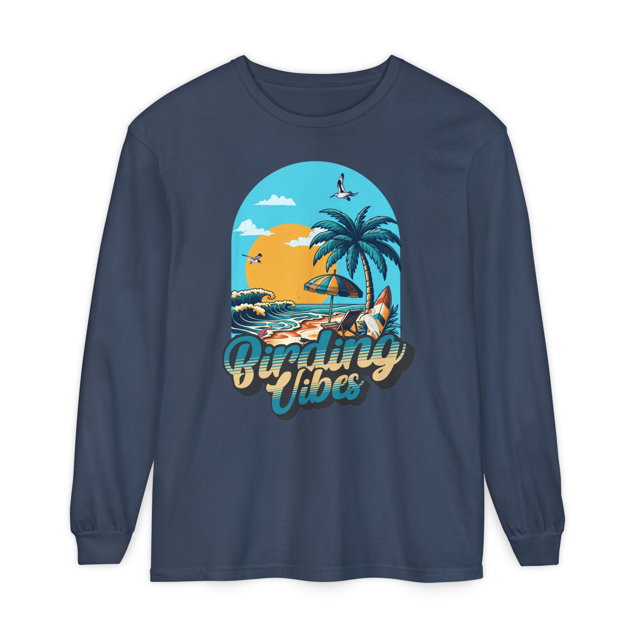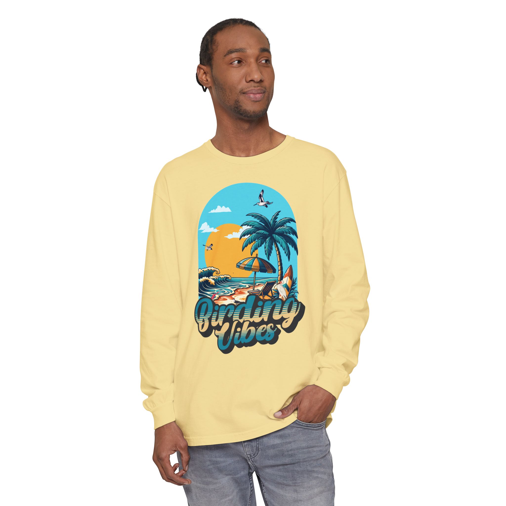 Embrace casual elegance with this unisex long sleeve t-shirt. Perfect for layering on a cool day or wearing solo for a relaxed vibe. Its soft garment-dyed fabric adds a touch of comfort while the vibrant design evokes a tropical ambiance, making it ideal for beach lovers and summer adventurers. This shirt suits those who appreciate stylish ease, making it great for outdoor events, casual gatherings, or cozy nights in. It’s a wonderful addition to any wardrobe, especially for holidays like summer vacations, beach parties, and spirited celebrations with friends.