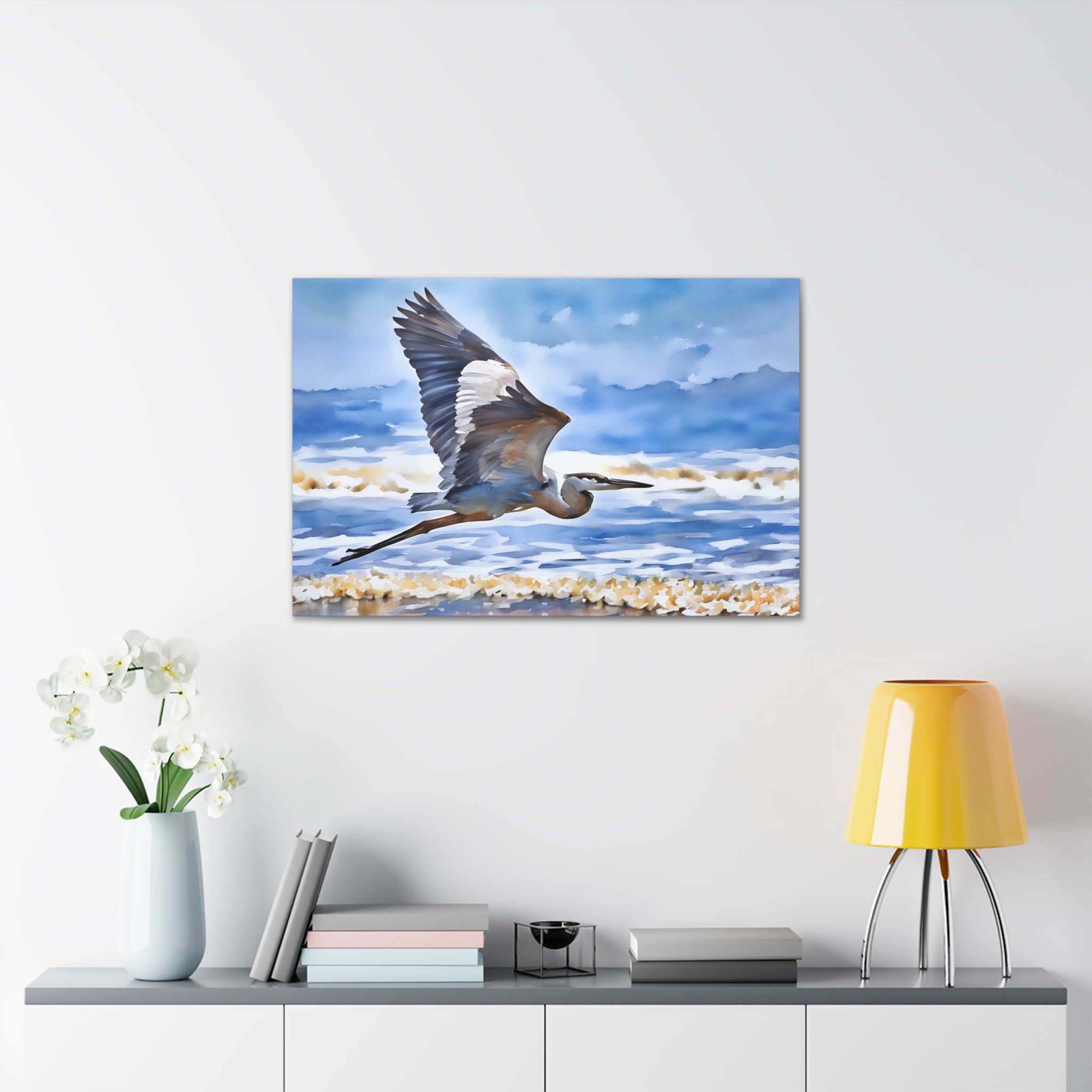 Be the first to review “Soothing Coastal Canvas Gallery Wraps featuring Majestic Heron in Flight”