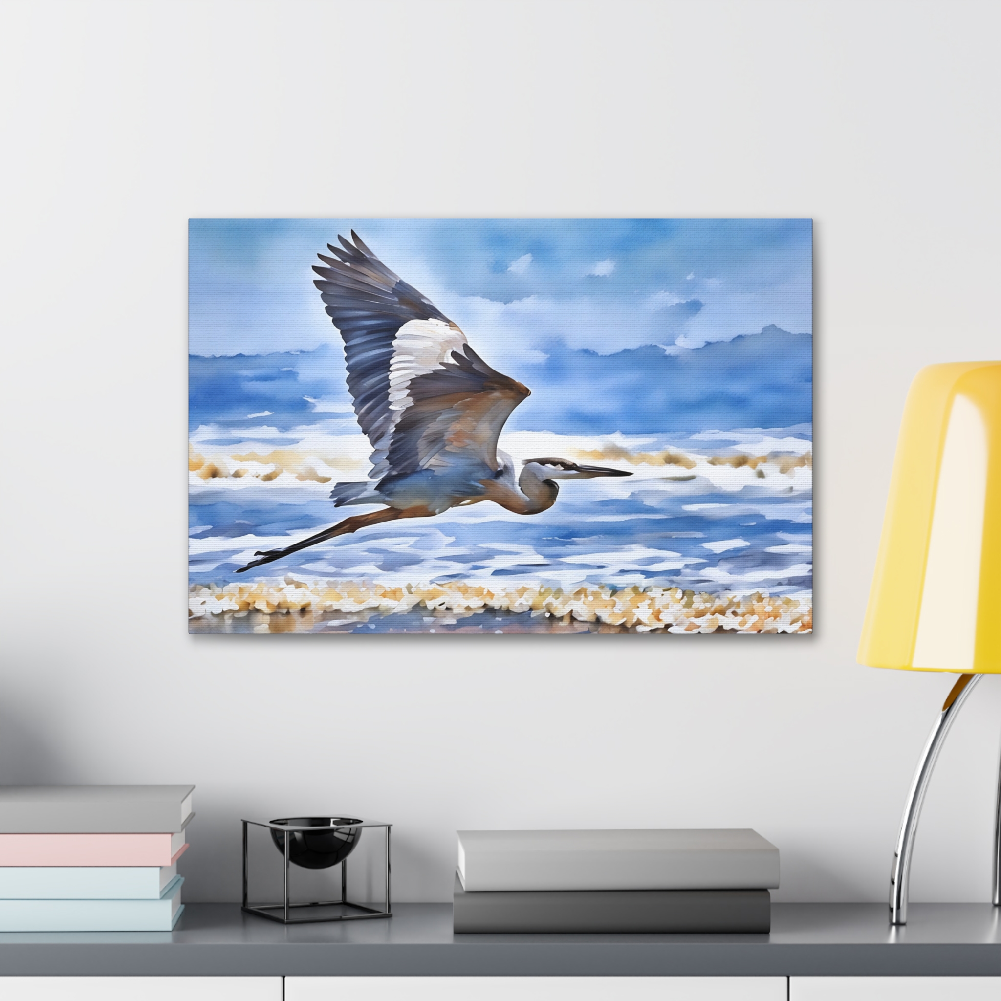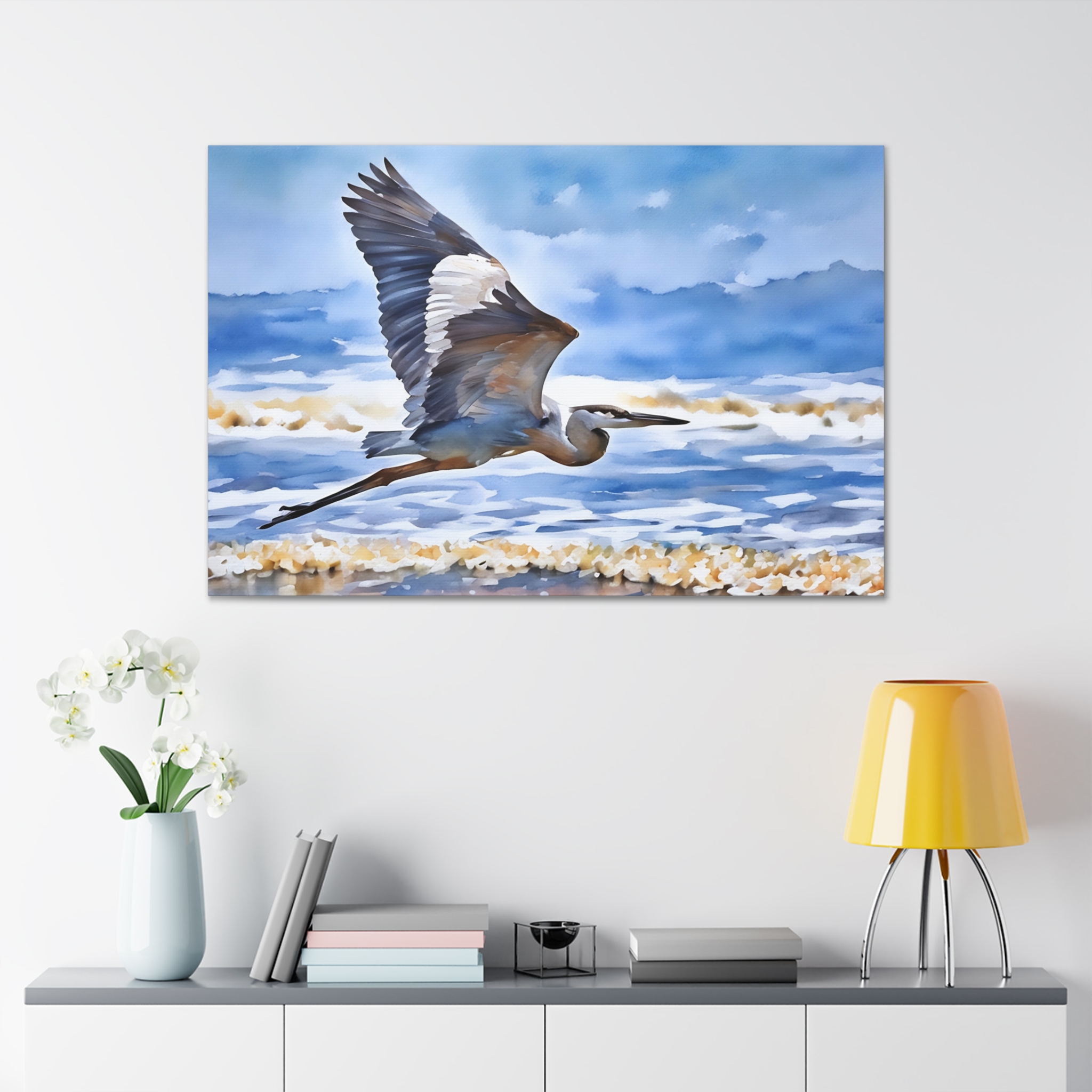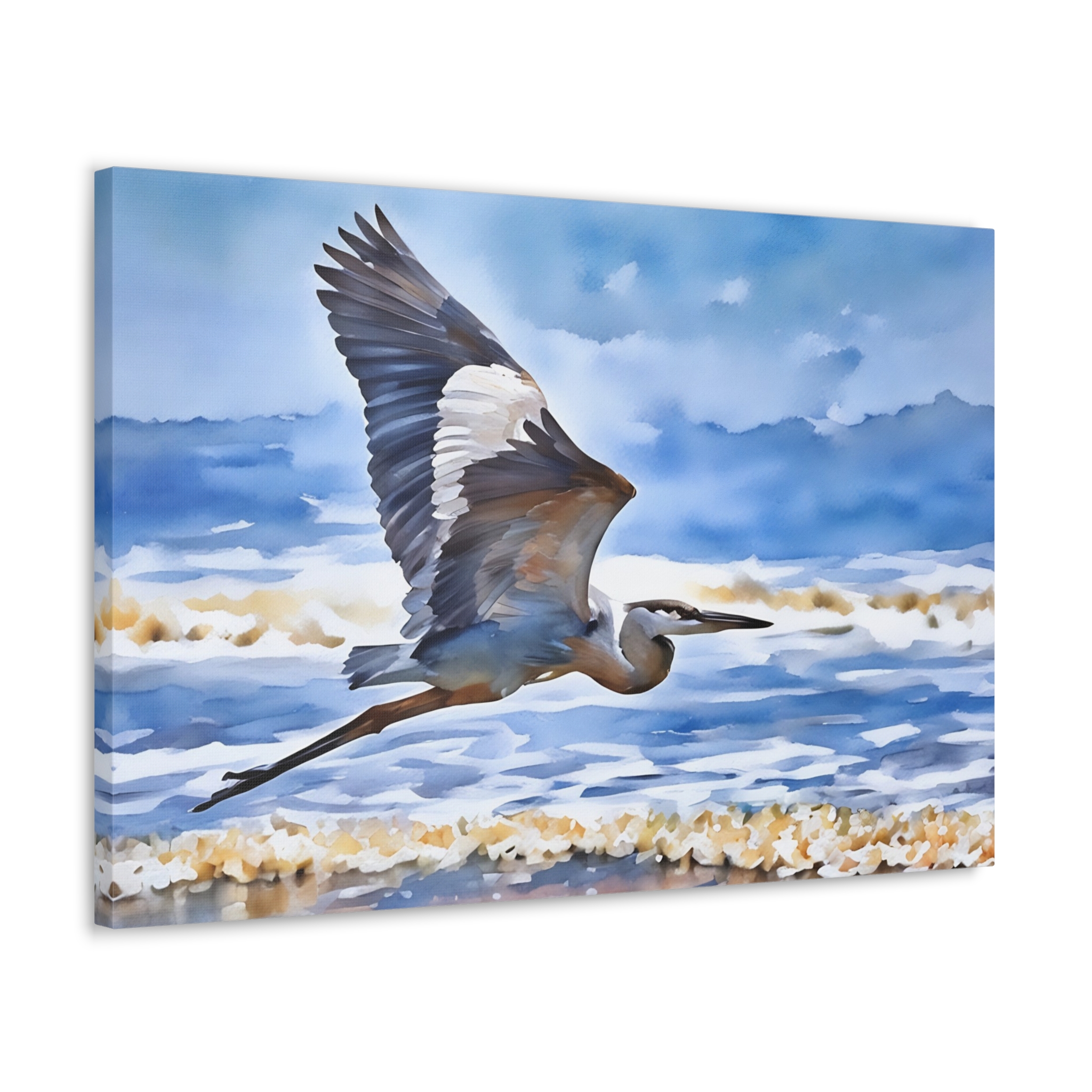 Soothing Coastal Canvas Gallery Wraps featuring Majestic Heron in Flight