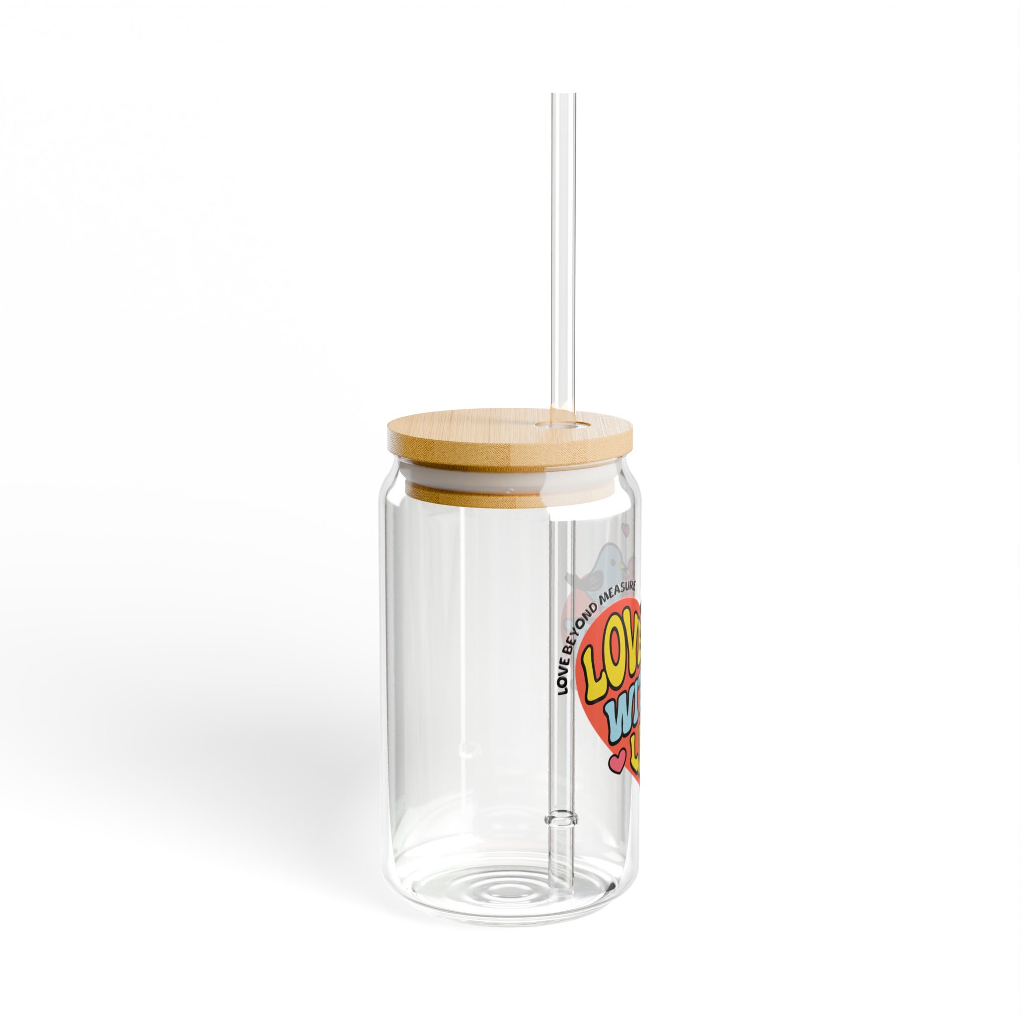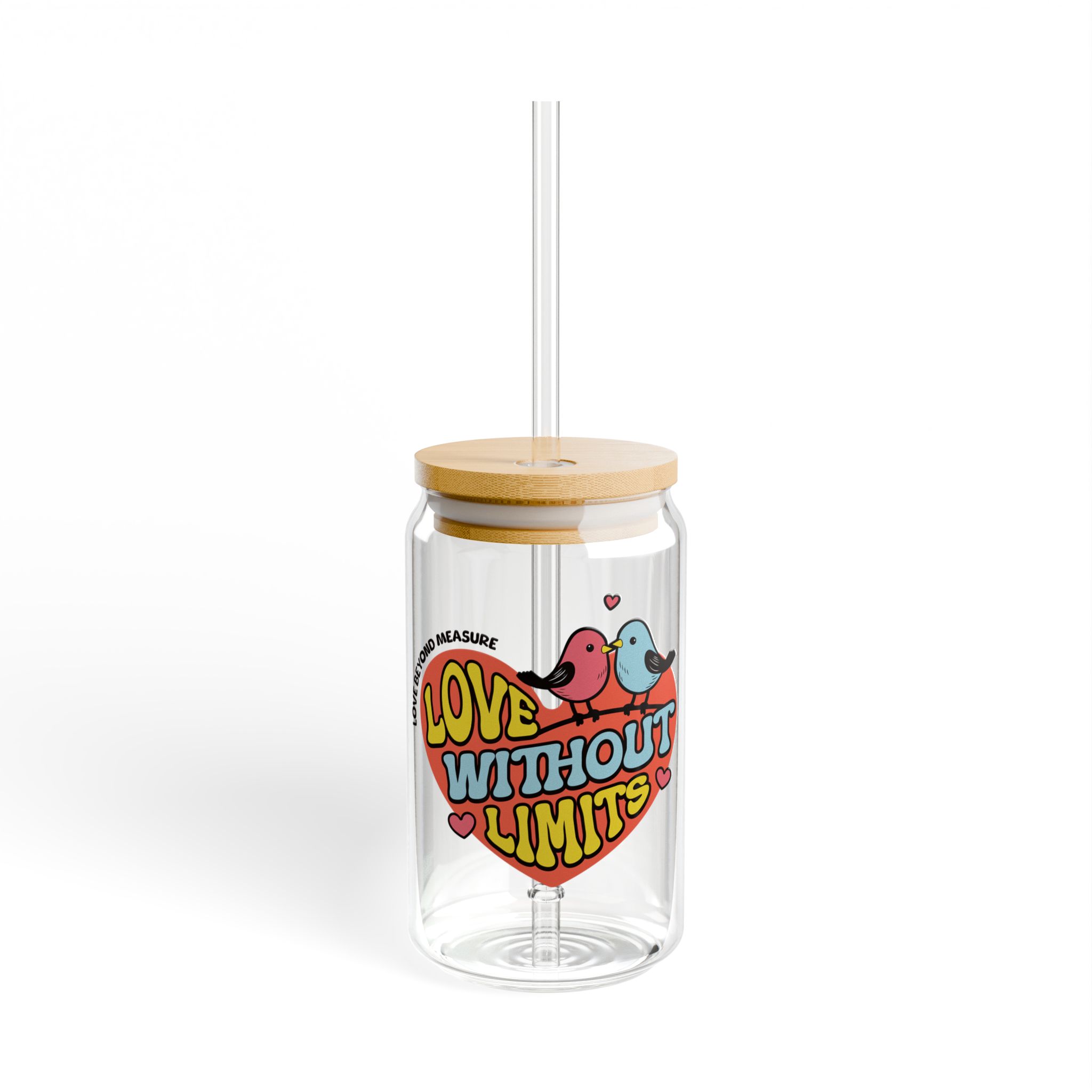 The Nerdy Birder Love Without Limits 16oz Sipper Glass With Bamboo Lid